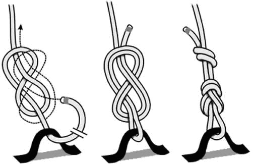 Ele é normalmente feito com duas voltas, como mostra a figura, mas no caso de escorregar, pode ser utilizado com três ou mais voltas.
