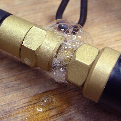 teste com a esponja com sabão, tanto no registro e na boca do botijão para